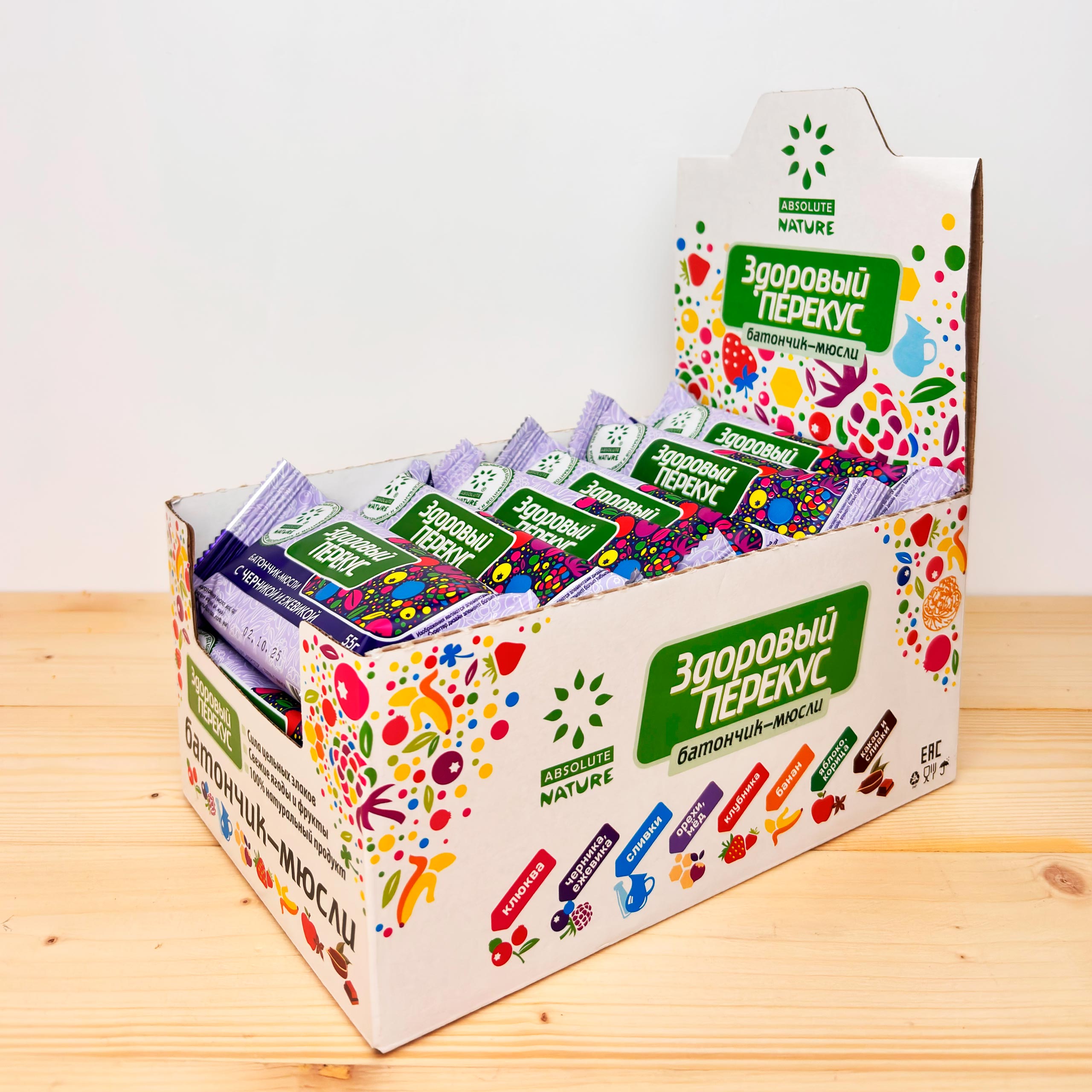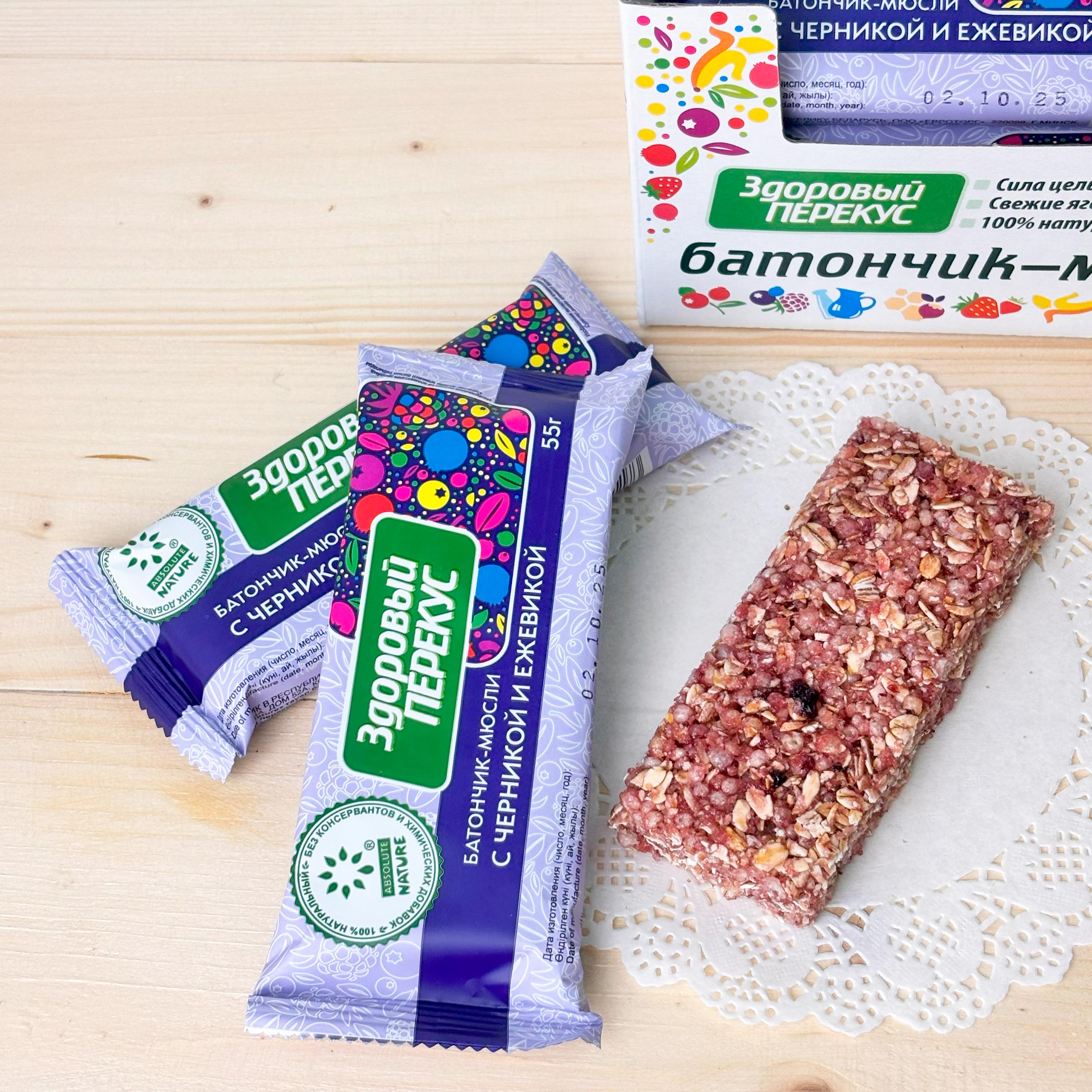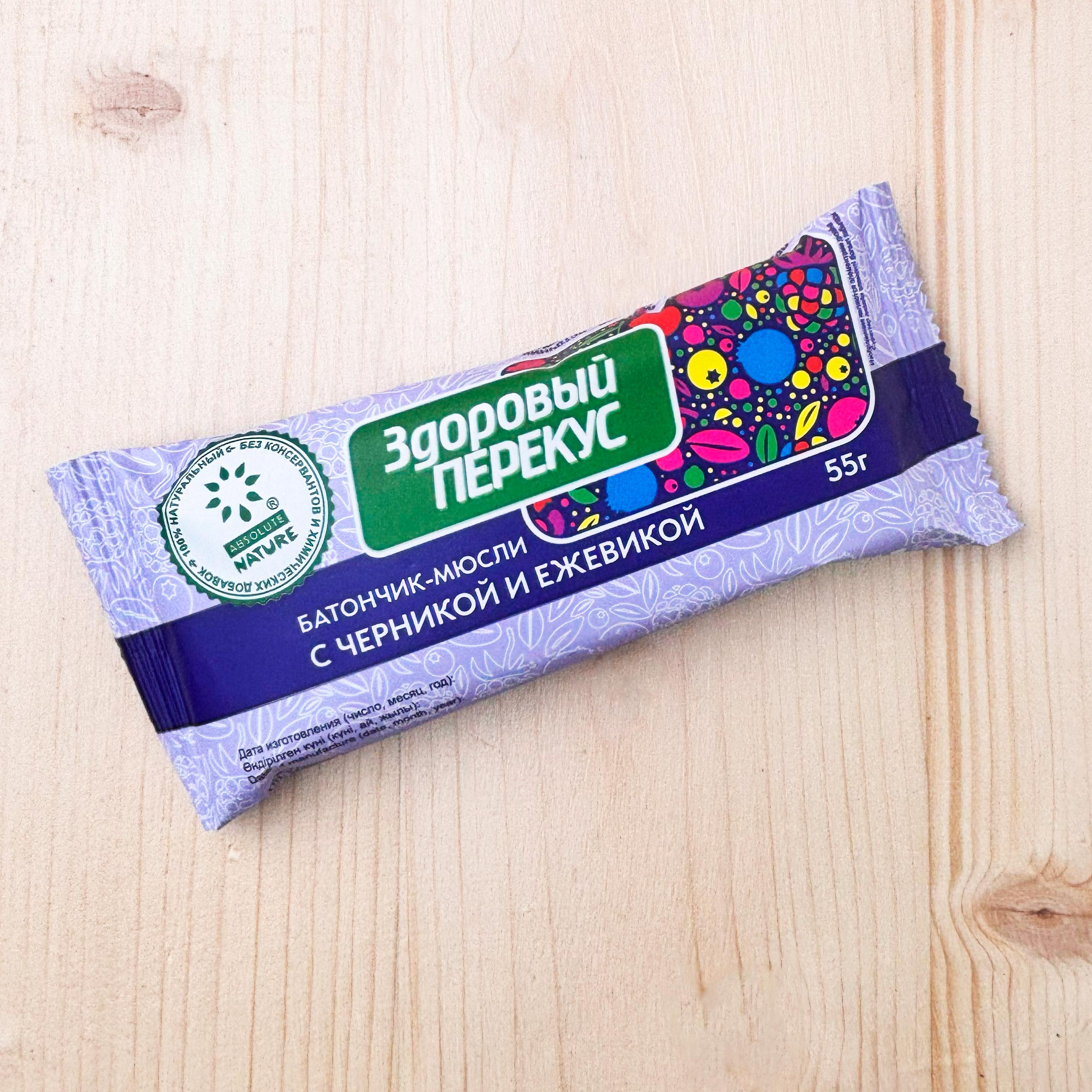 Батончики-мюсли «Здоровый перекус» с товарным знаком «Absolute Nature» с черникой и ежевикой