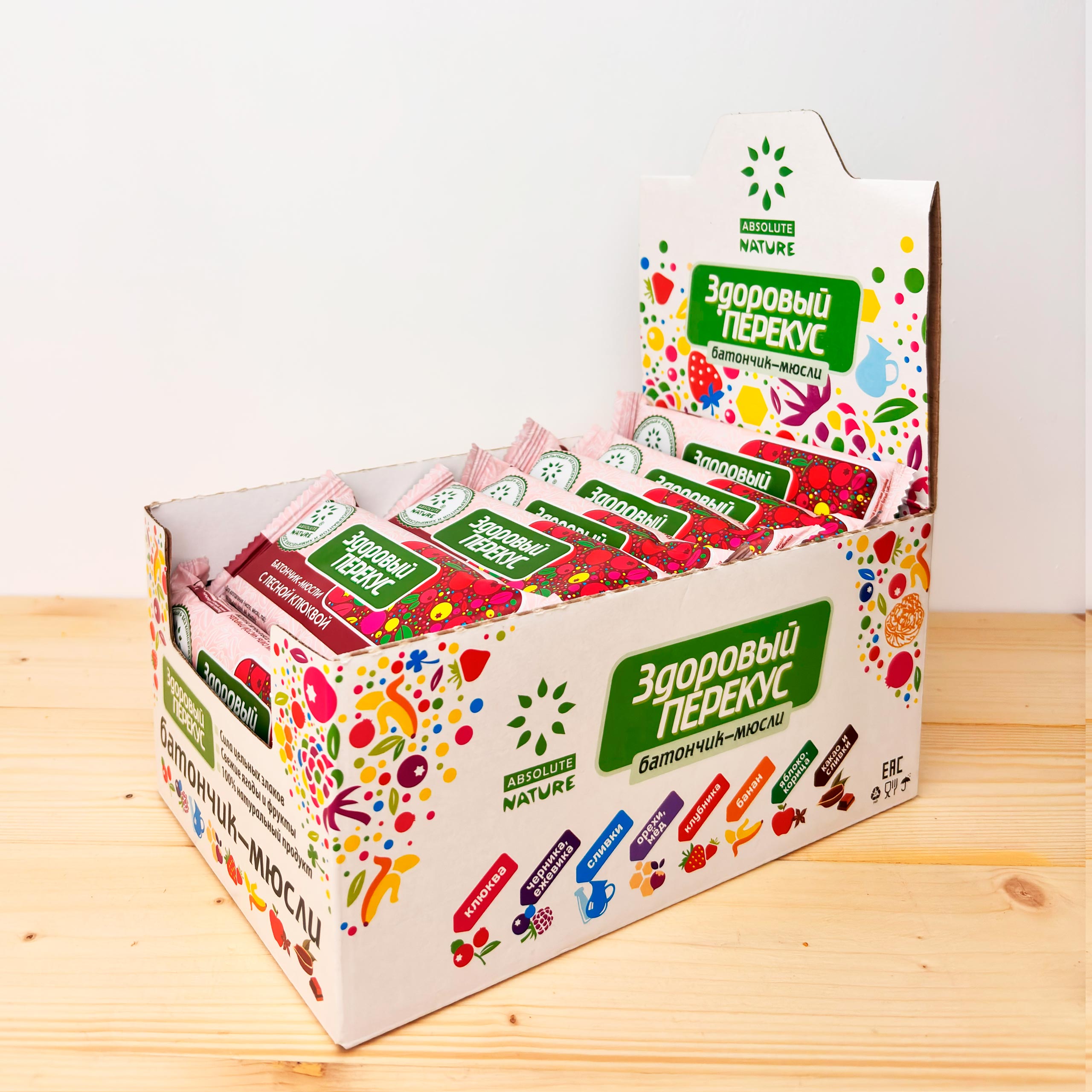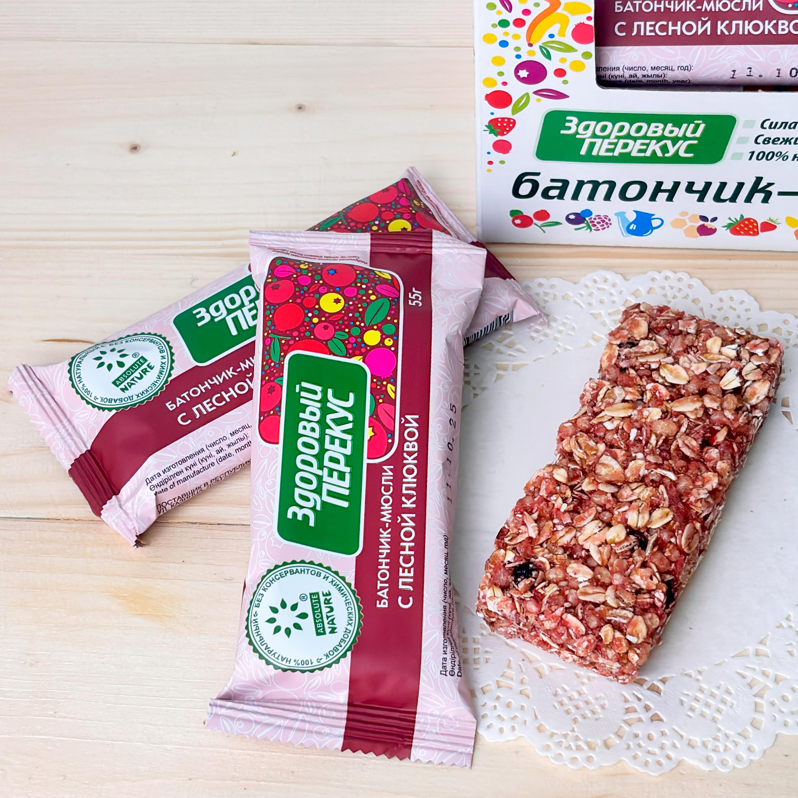 Батончики-мюсли «Здоровый перекус» с товарным знаком «Absolute Nature» с клюквой