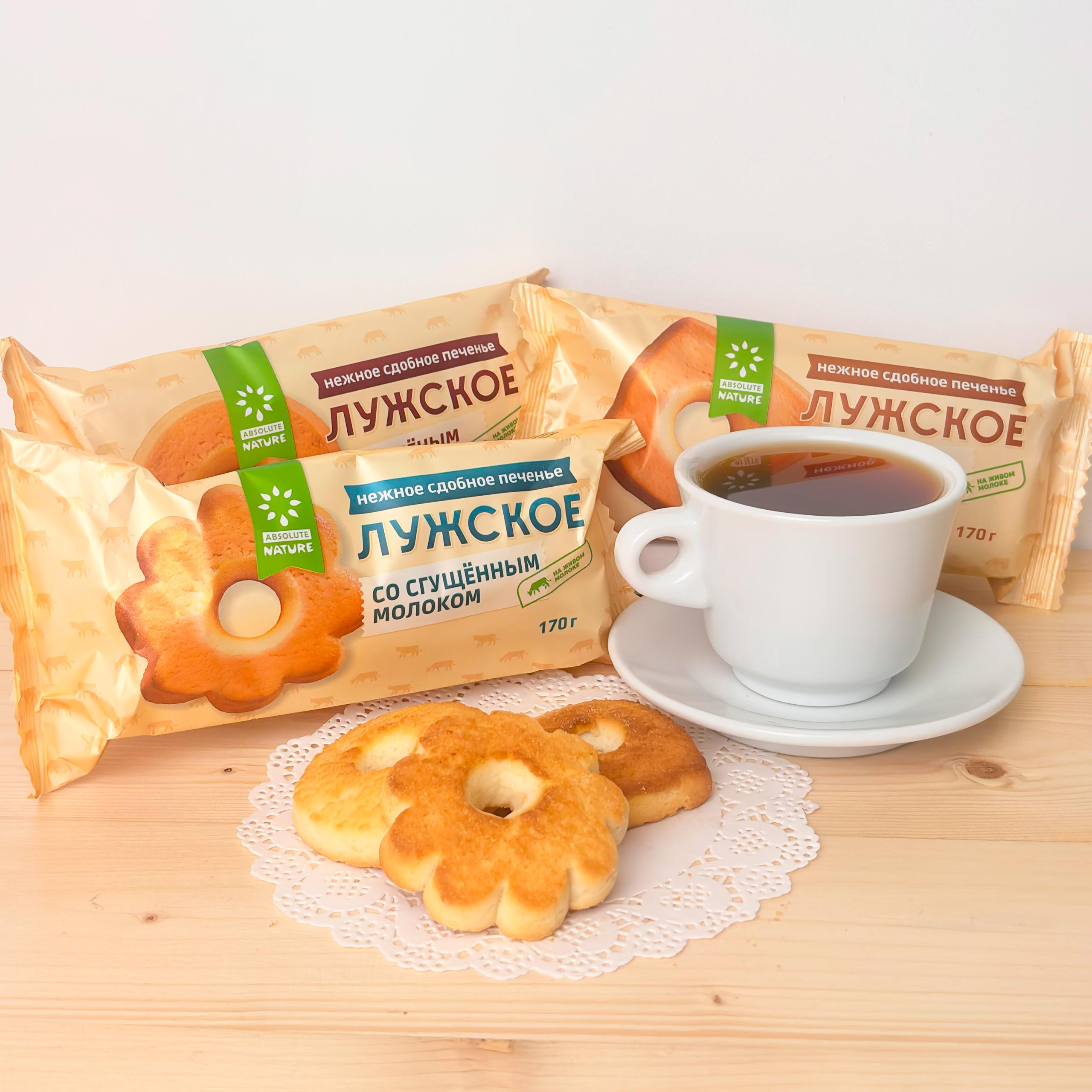 То самое легендарное сдобное печенье «Лужское», известное своим неповторимым качеством и запоминающееся хрусткостью