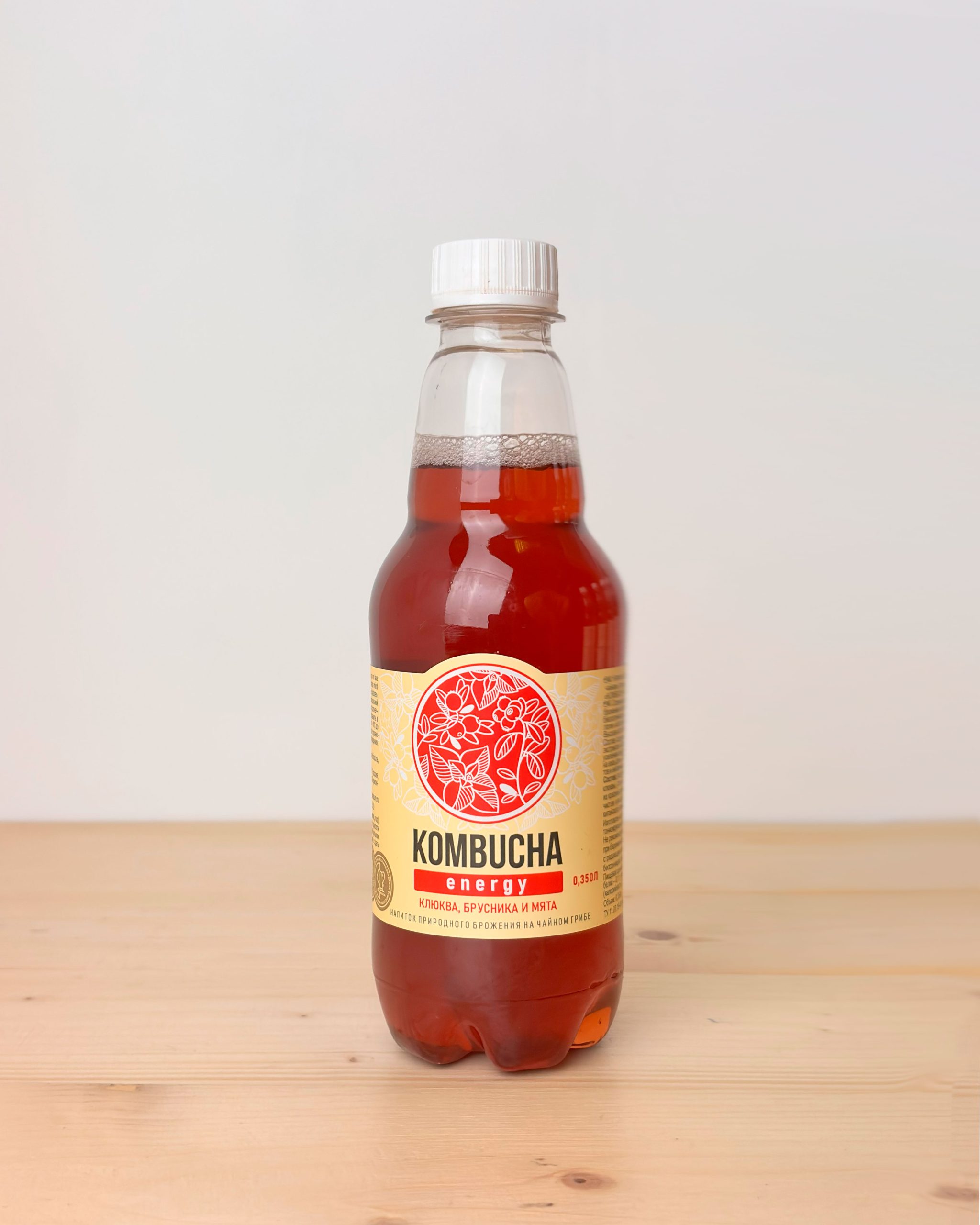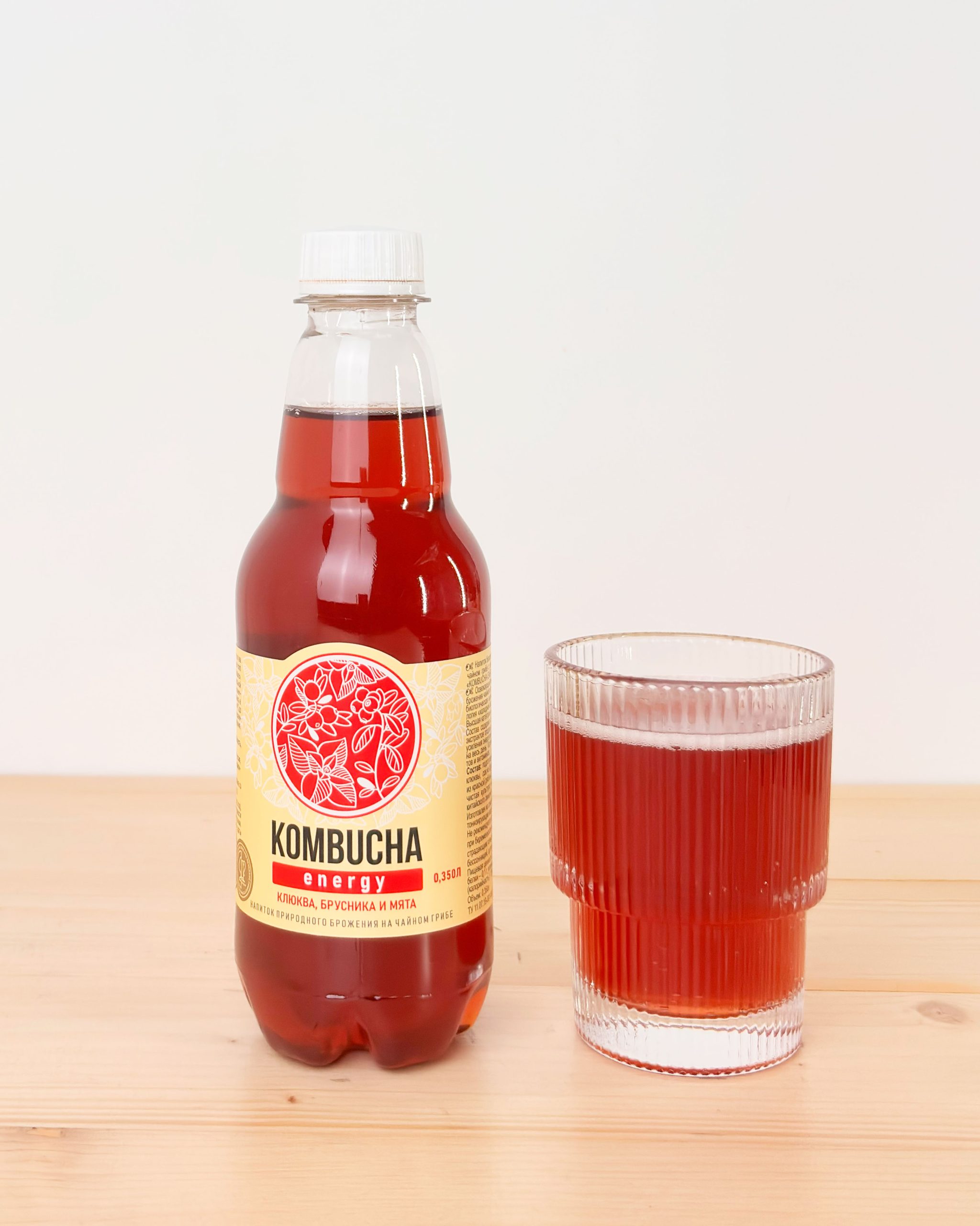 Безалкогольный напиток натурального брожения на чайном грибе с соками клюквой, брусникой и свежей мяты «Kombucha — Energy».