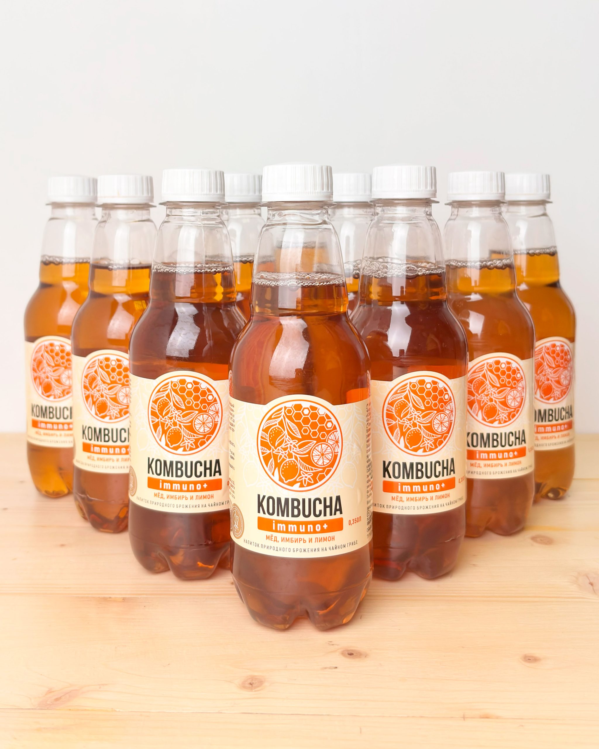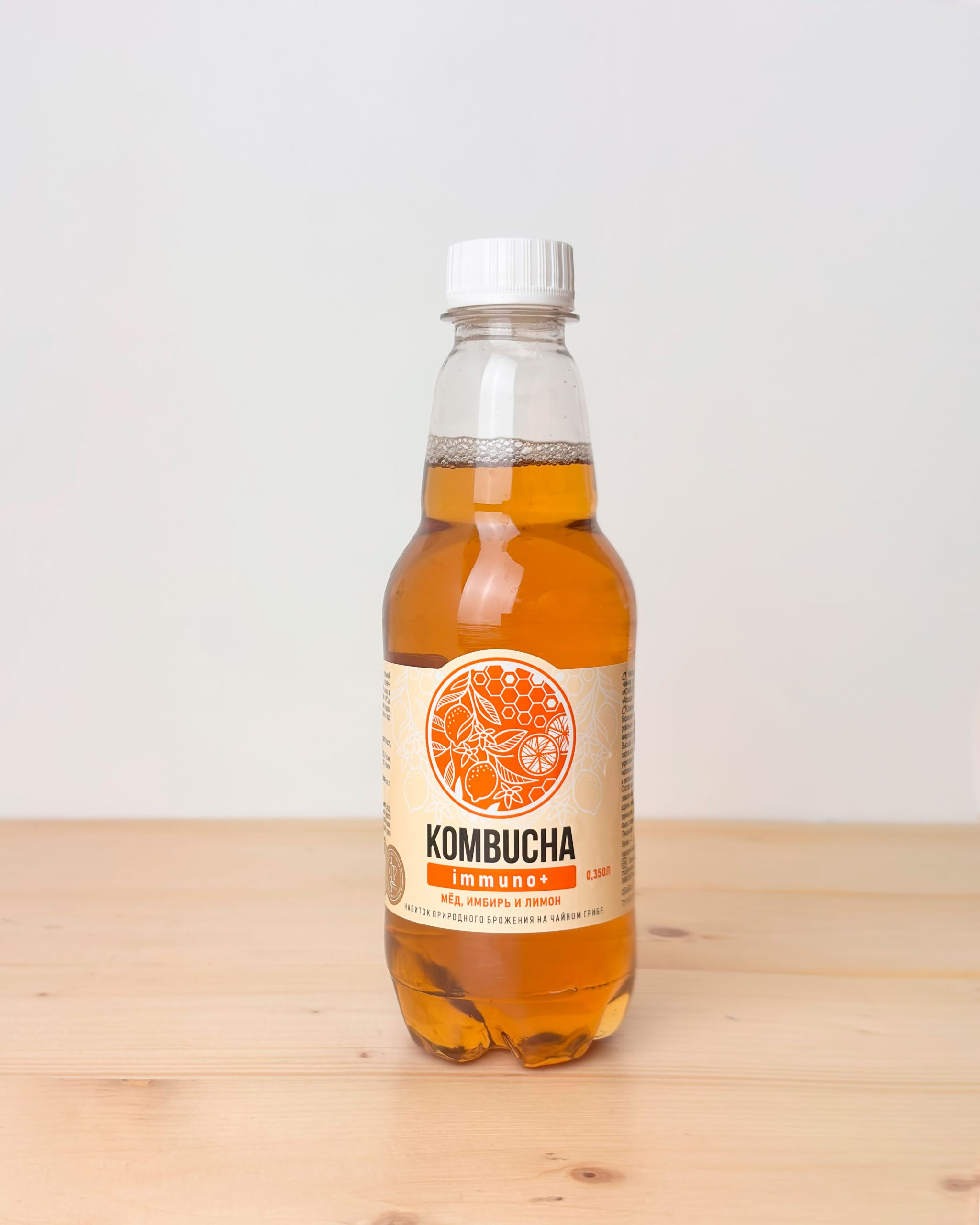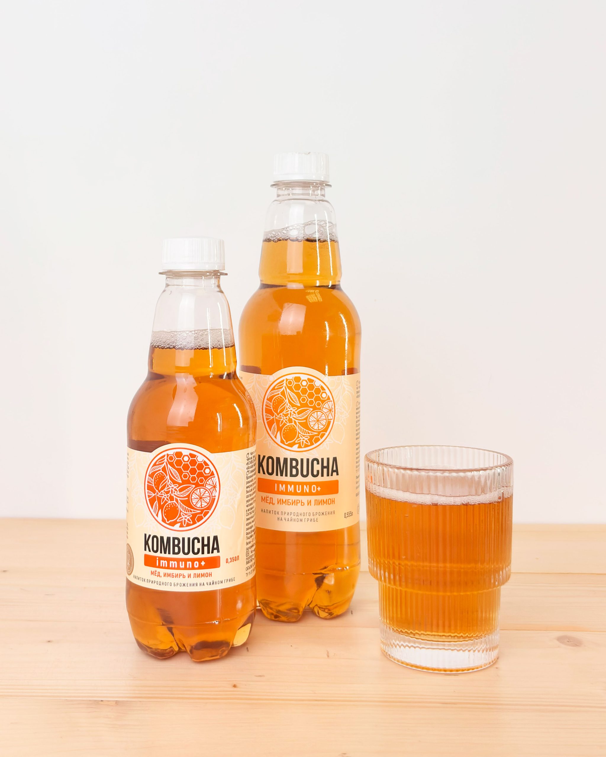 Безалкогольный напиток натурального брожения на чайном грибе с имбирем, медом и соком плодов лимона «Kombucha — Immuno+».