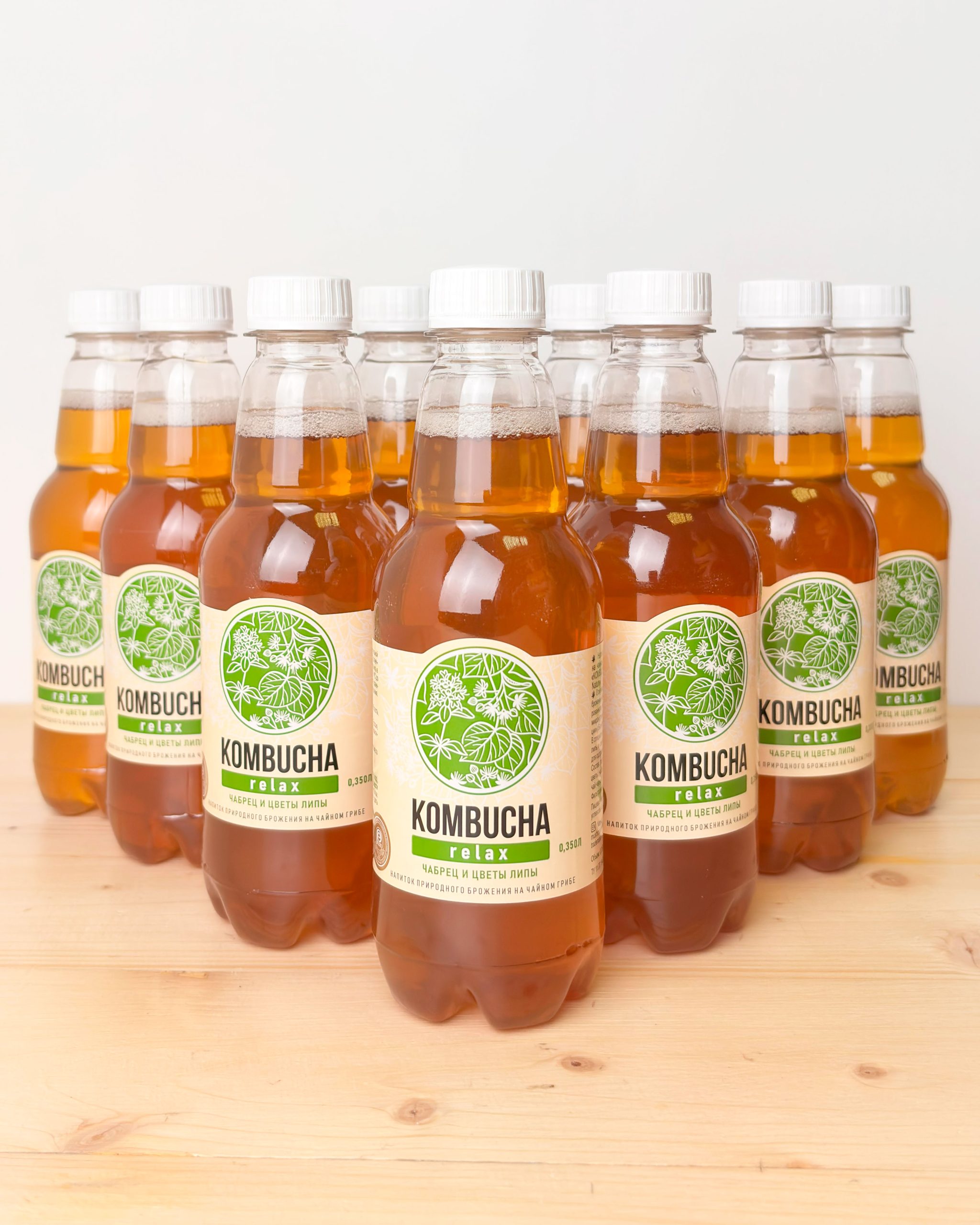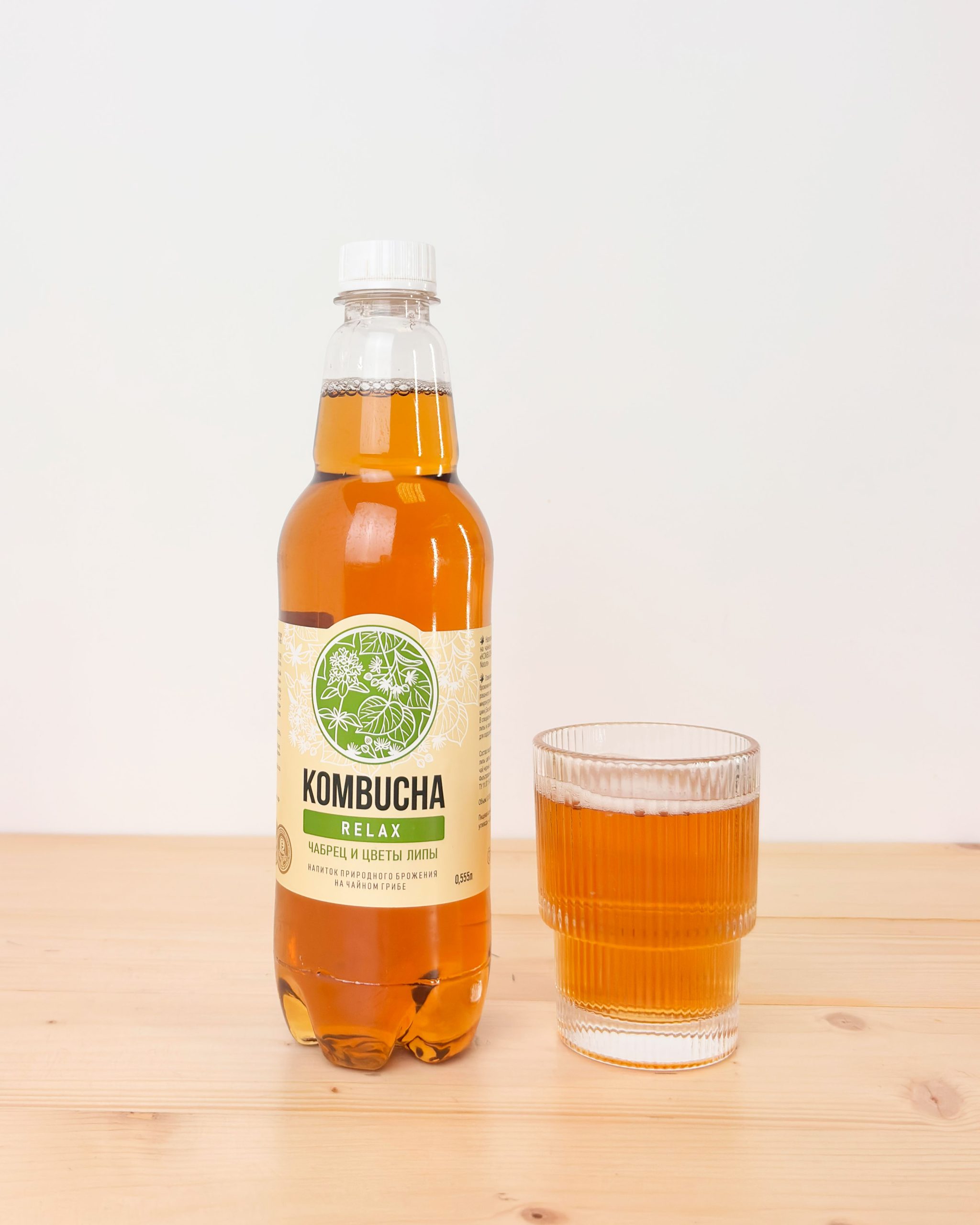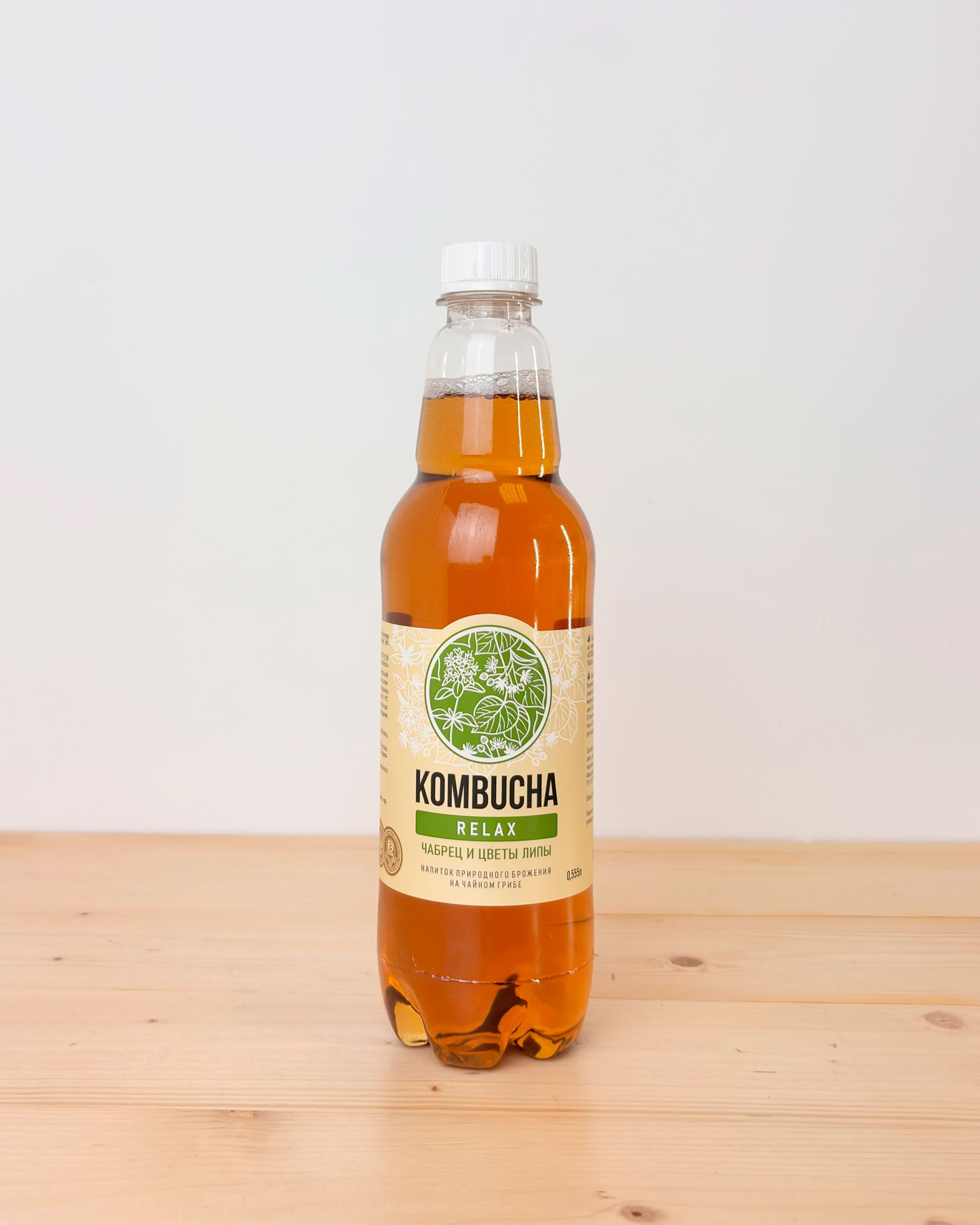 Безалкогольный напиток натурального брожения на чайном грибе с цветами липы и чабрецом «Kombucha — Relax».