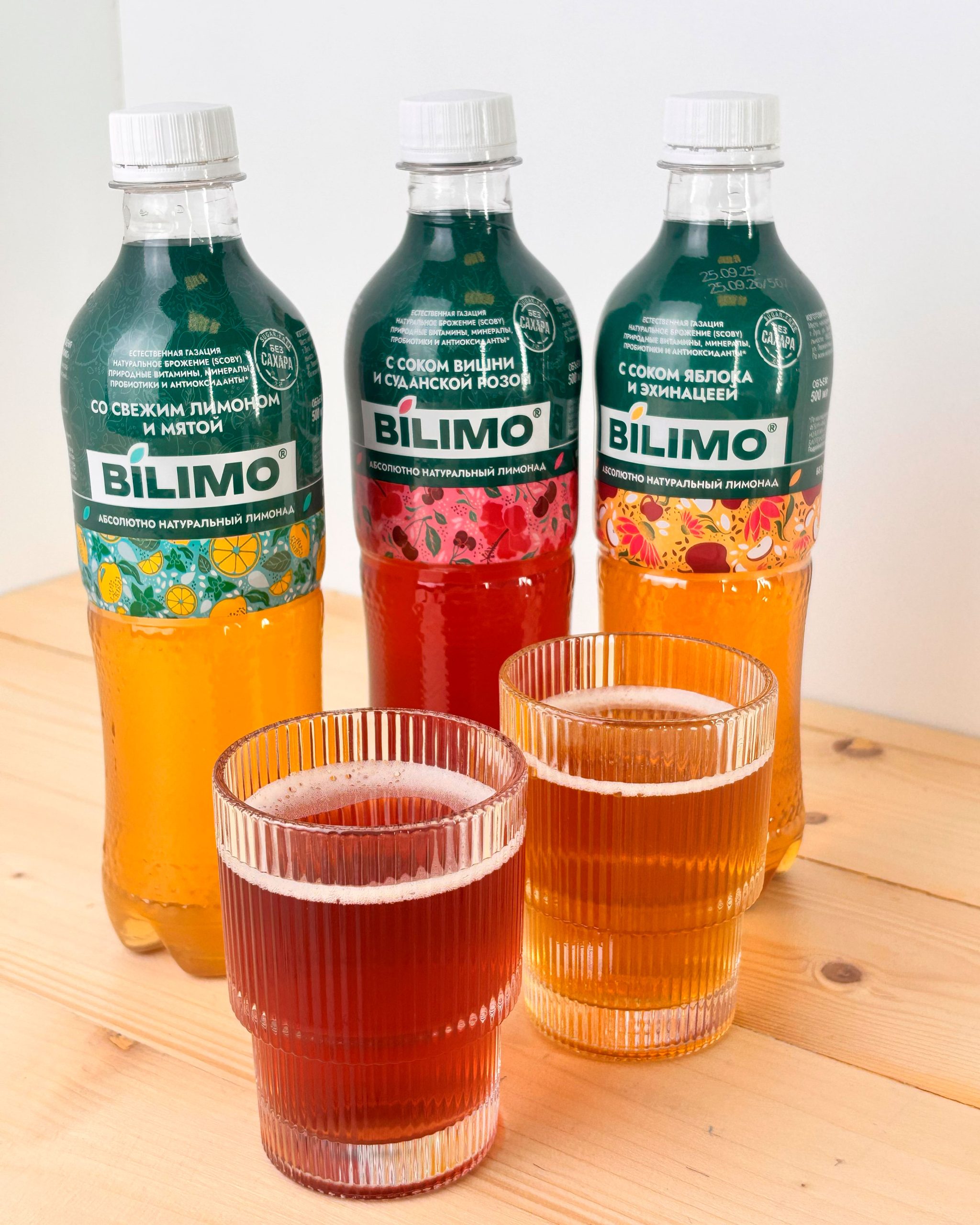 Безалкогольный напиток натурального брожения «BILIMO — с соком вишни и суданской розы».