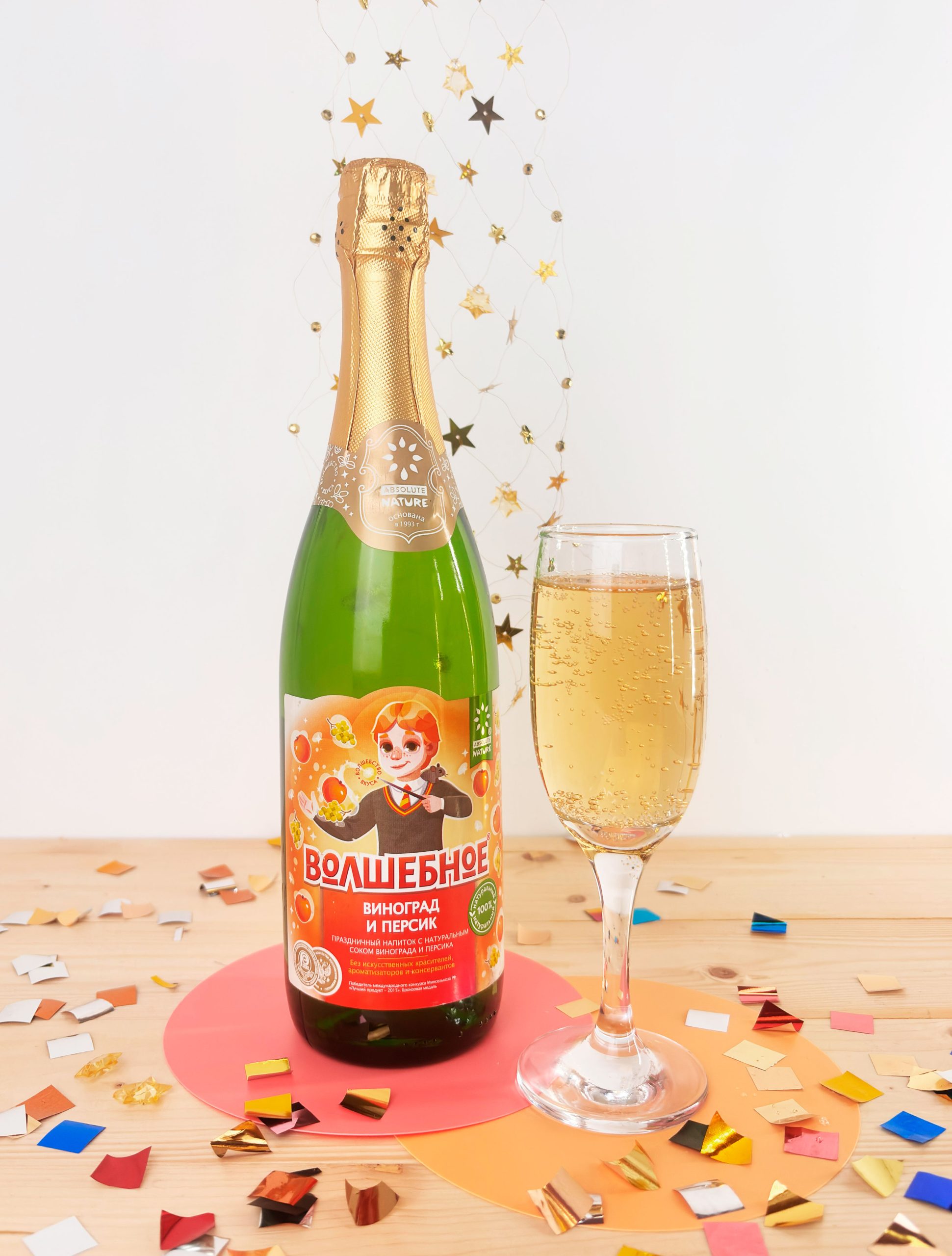 Детский праздничный напиток (детское шампанское) «Волшебное» — Виноградно-персиковый, с витамином С