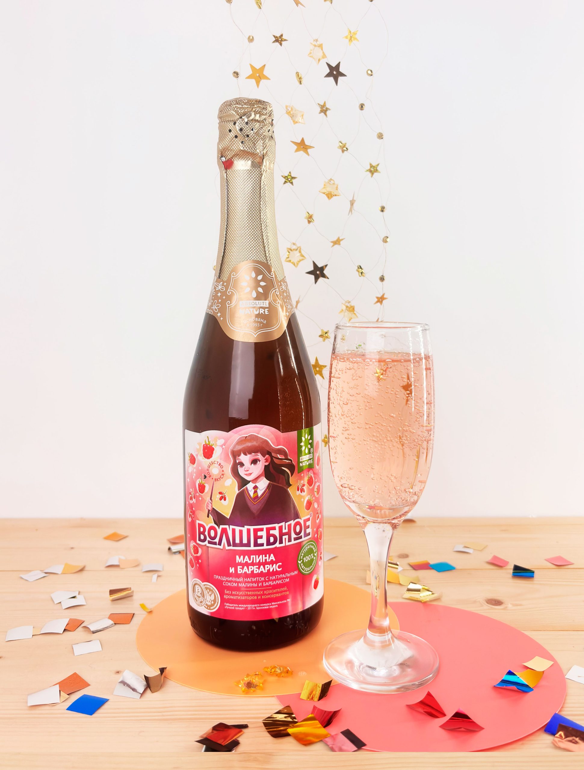 Детский праздничный напиток (детское шампанское) «Волшебное» — Малиново-барбарисовое, с витамином С